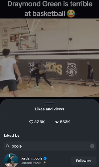 值得一提的是,美媒Automatic随后又晒出了这条社媒的点赞记录,追梦的前队友普尔点赞了这条视频。